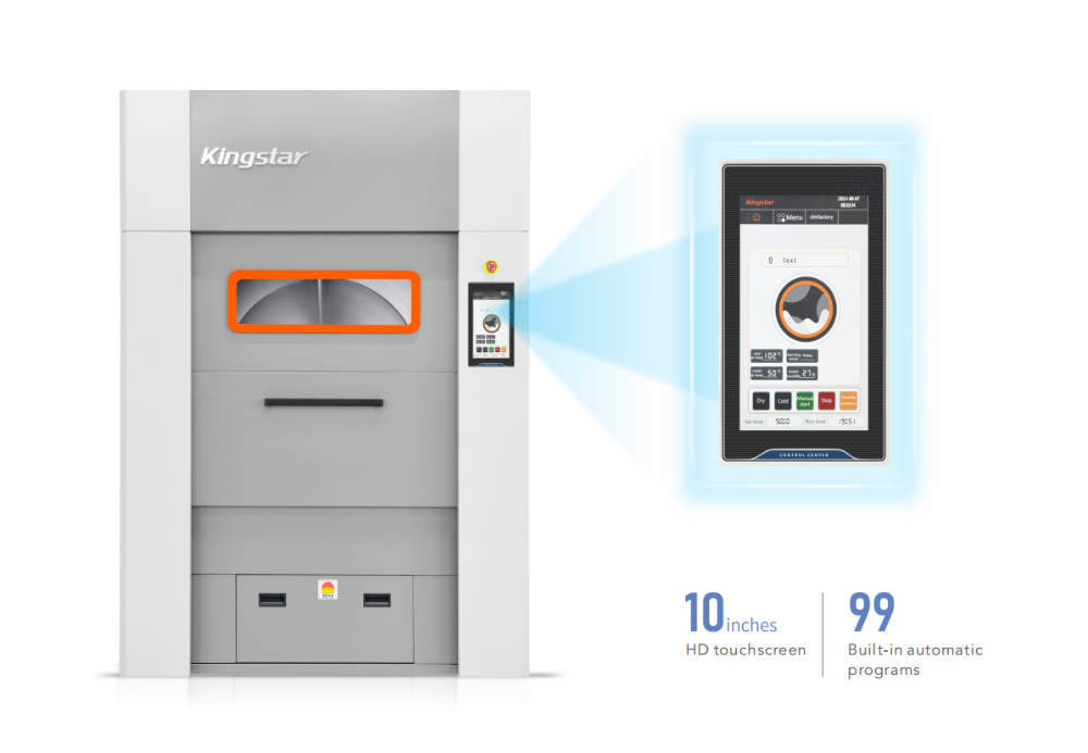 ❑ Programmata remittit: In terminis programs Kingstar 100 kg dryer utitur 10-unc plenae color tactus velum, quod 99 programmata siccanda reponunt. Parametri in unaquaque progressione accommodari possunt. Cum desiccatio est, siccior in tres modum temperationis utitur: tempore, caliditate et humiditate.