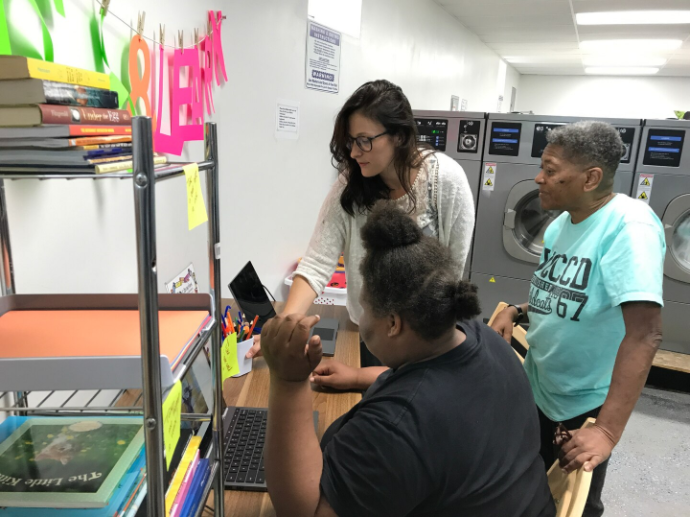 Kira Baker-Doyle, moderator Centri Litterarum in Collegio Educationis in Universitate Illinois apud Chicago, ostendit laudromats, loco membrorum communitariorum collectio, locum egregium esse ad explicandum habitum et studium legendi. Lectio actio socialis est quae relationes interpersonales et communitatis ambitum movet.